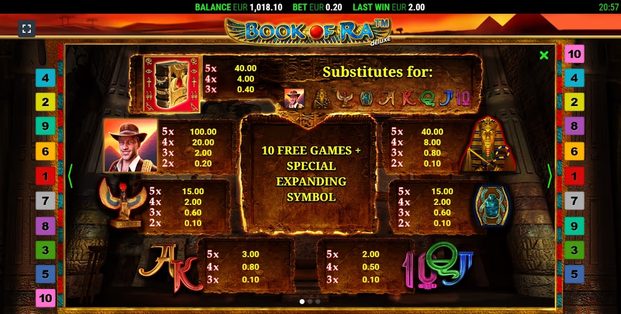 The gameplay in Book Of Ra is fairly typical. The slot features a bonus round that provides ten free spins, increasing the chances of winning. This feature is activated when three Book Of Ra symbols appear on the screen. If the bonus symbol falls on all five reels, the player will get the maximum prize.